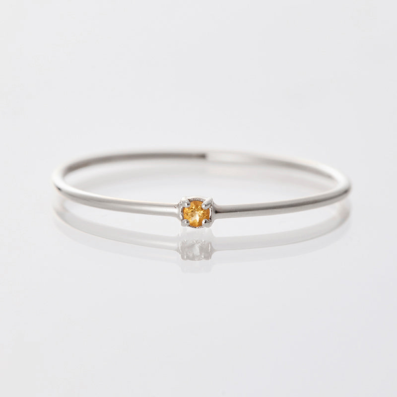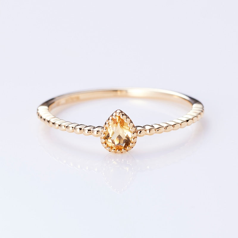 ・1粒シトリンリングは、華奢なゴールドリングとの重ね付けで上品な印象に。