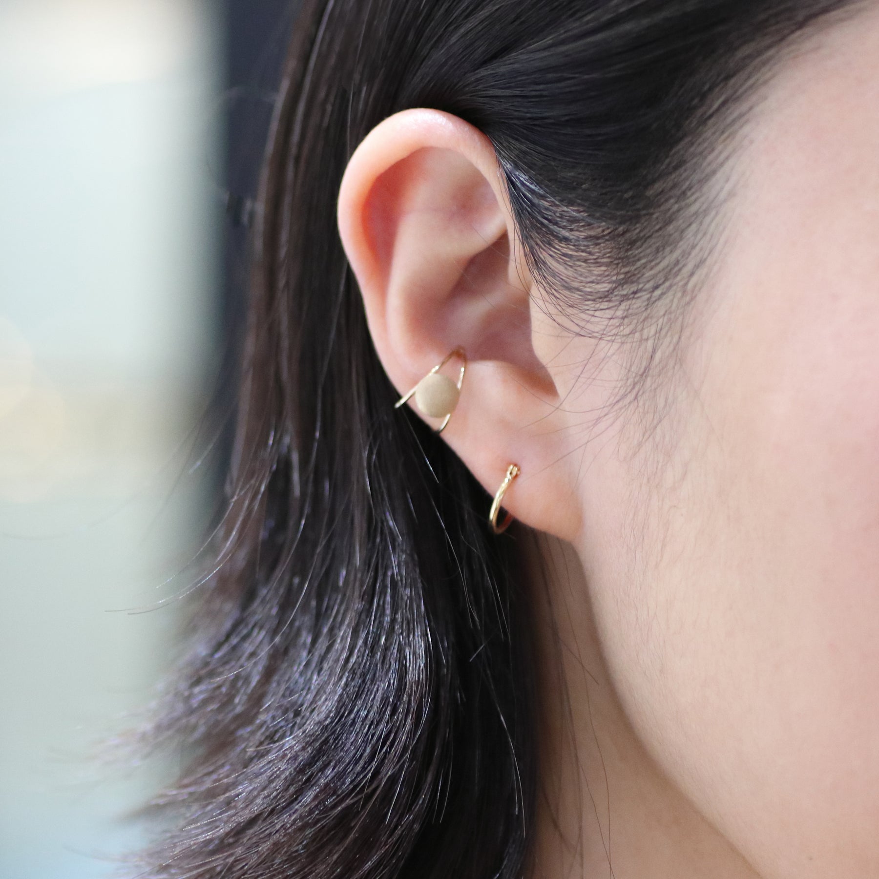 静かに輝く満月をイメージしたイヤーカフ。やわらかなゴールドとマットな質感が、夜空に輝く月のような落ち着いた存在感です。
