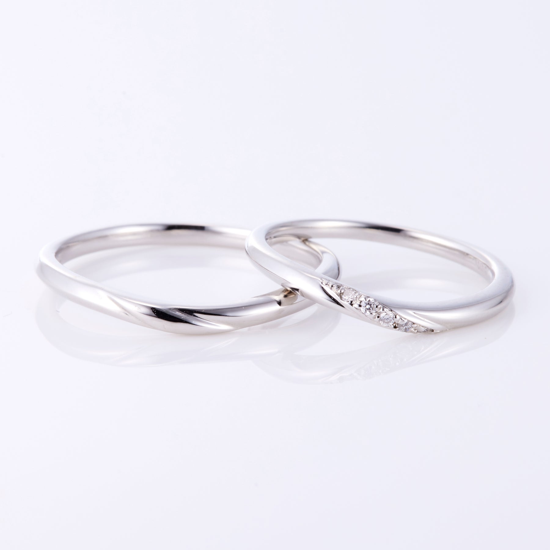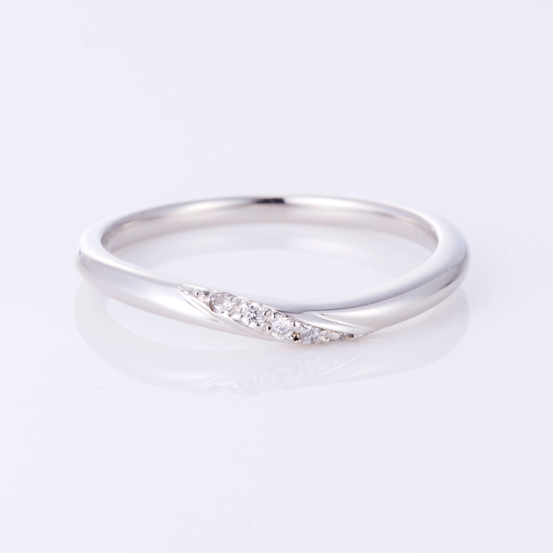フランス語で「オリーブの木」。平和と安らぎと知恵の象徴であり夫婦の木と言われる。困難に打ち勝つ強い絆をイメージ。滑らかな曲線が指先を美しく見せてくれるマリッジリング。川のように穏やかに流れる姿が二人の未来を幸せへと導いてくれます。シルクのような着け心地は手元にしっくりと馴染み、すっきりとした印象で永く着けていただきやすいデザインです。流れに添うダイヤモンドは輝かしい未来へといざなってくれるようです。