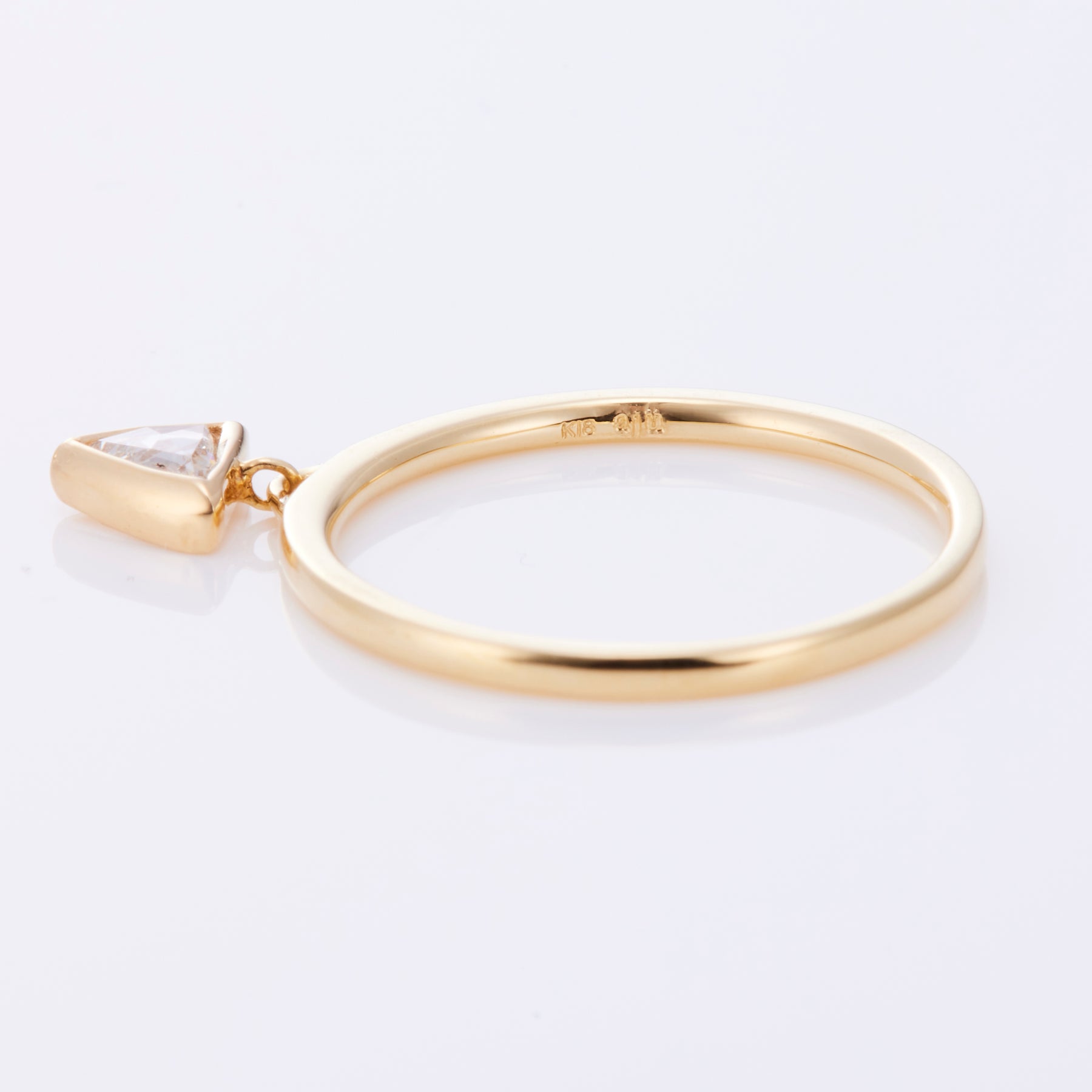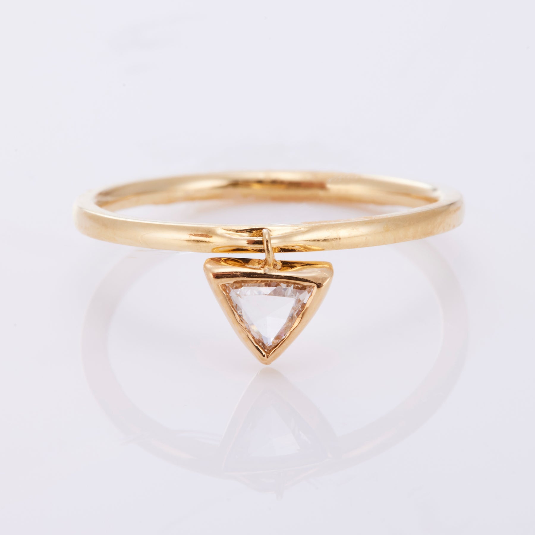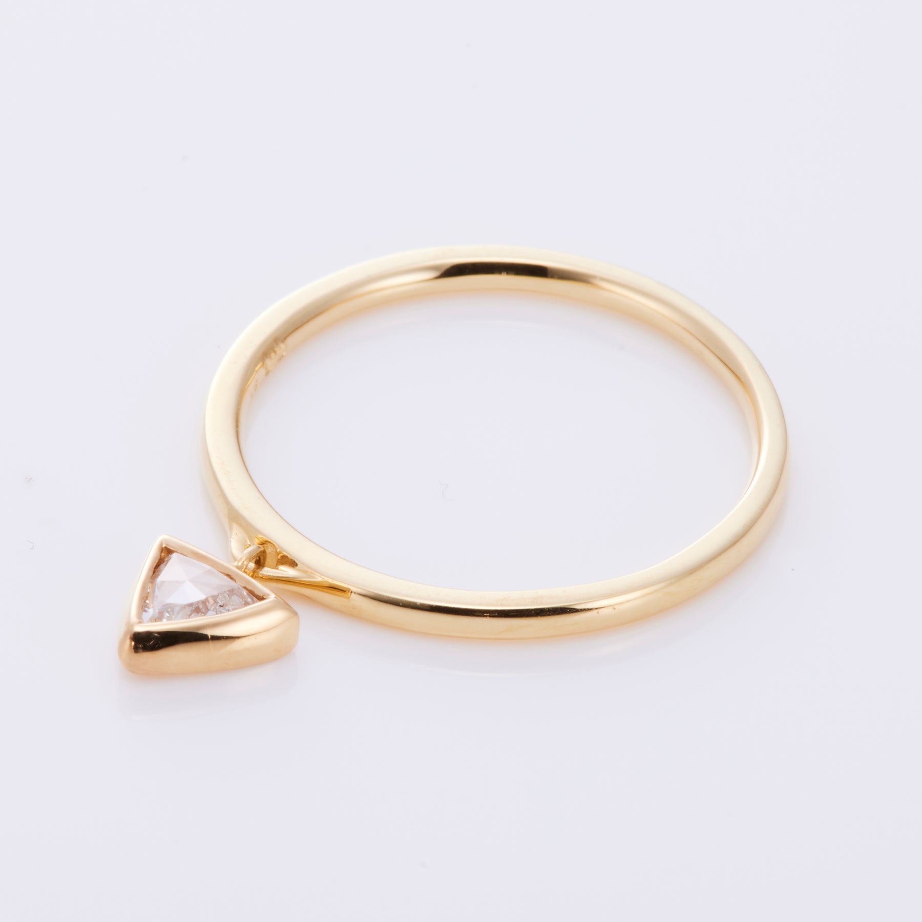 トライアングルのダイヤモンドにゴールドを合わせた18金のリング。ダイヤにはローズカットが施されています。中世のヨーロッパで愛されてきたローズカットは、その形がバラに似ていることから名付けられました。ダイヤモンドのイメージであるブリリアントカットより長い歴史を持つ、アンティークカットです。