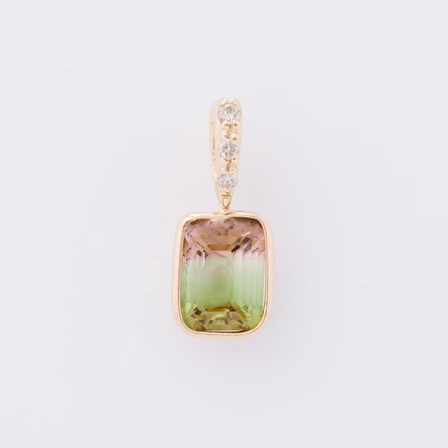 K10YG トルマリン ウォーターメロン バゲット イザベル ペンダントトップ