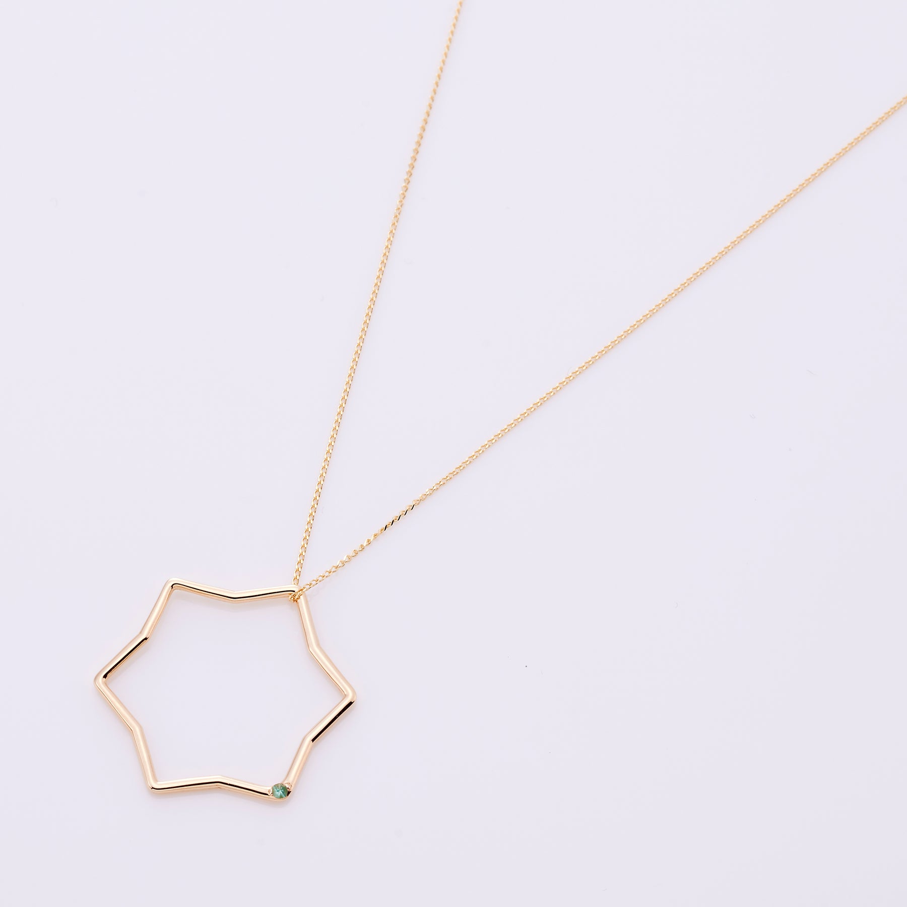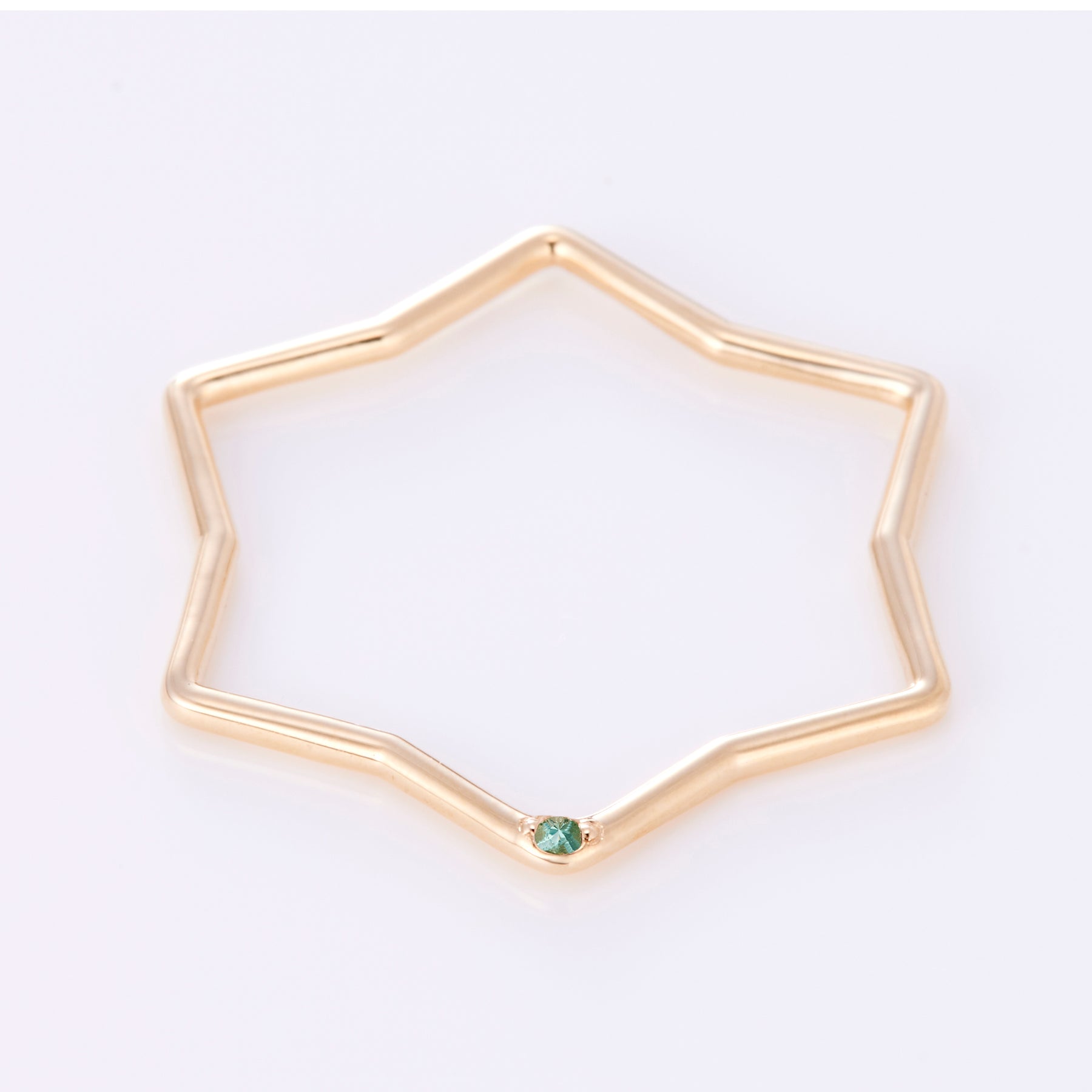 星のモチーフに5月の誕生石「エメラルド」を1石埋め込んだペンダントトップ。チェーンに通してペンダントトップとして、リングとして、フープピアスに通してチャームとしてもお使いいただける可愛い星型のペンダントトップです。