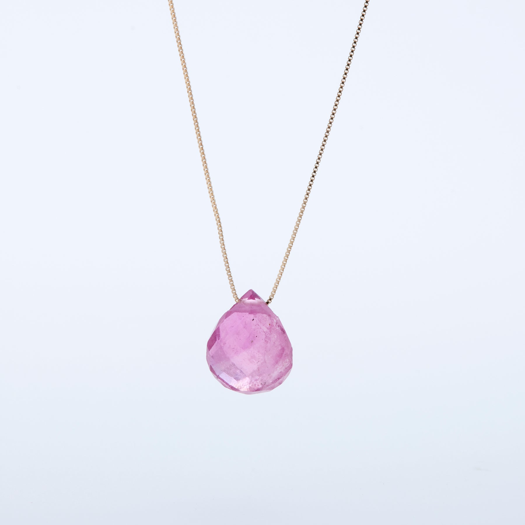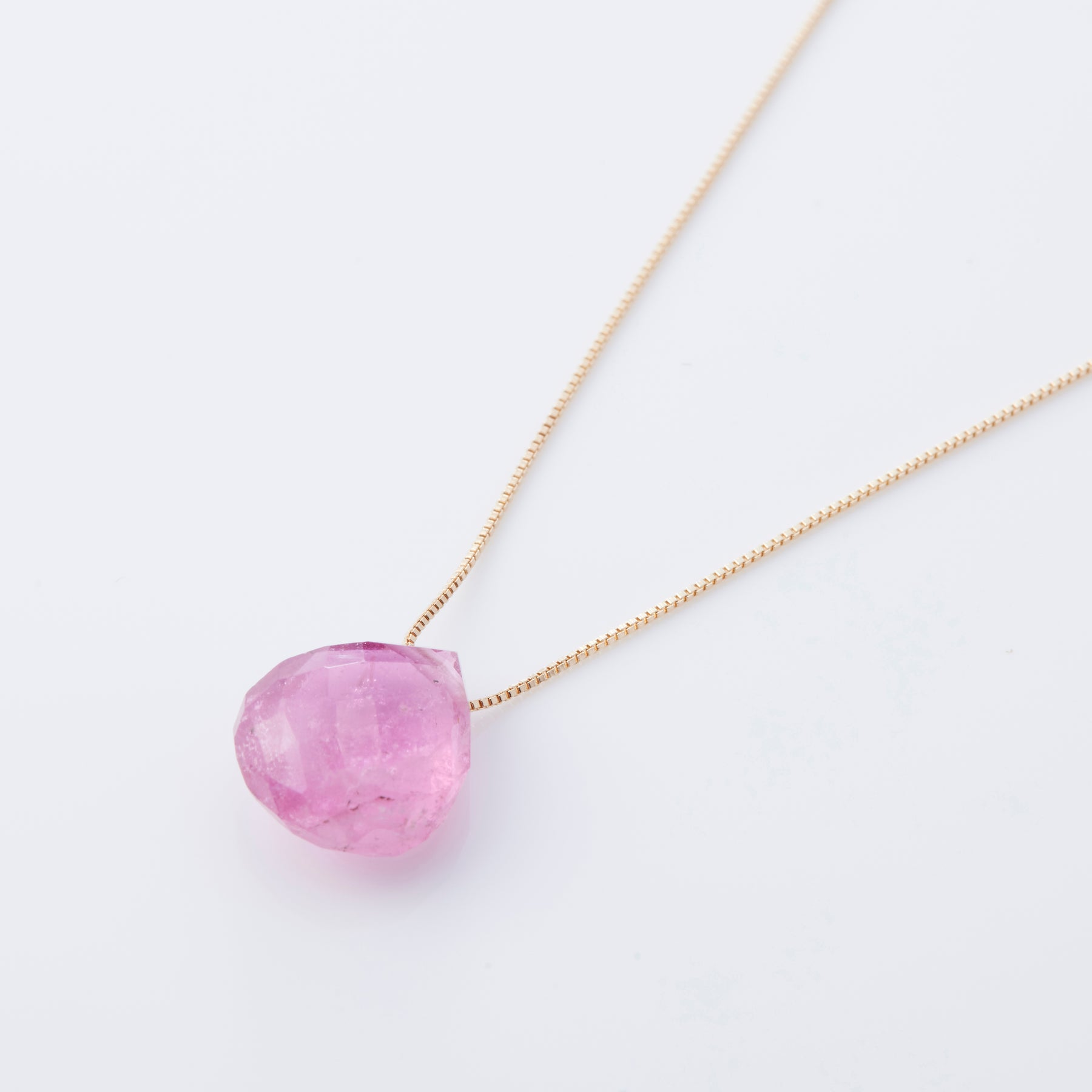 透明感のあるルベライトがやさしく輝くネックレス。鮮やかなピンクが明るく、シンプルながらも胸元に華やかさを添えてくれます。