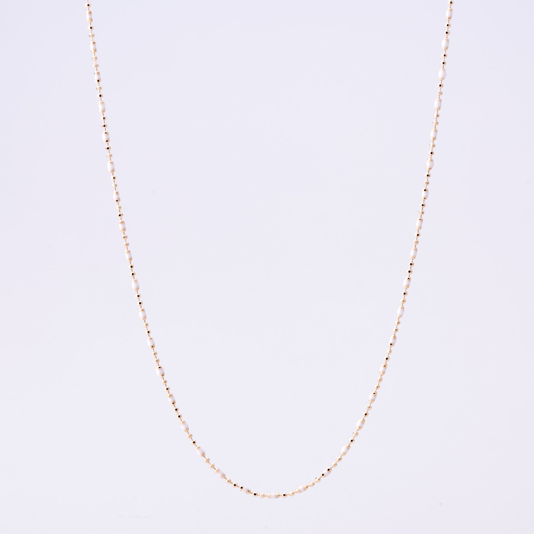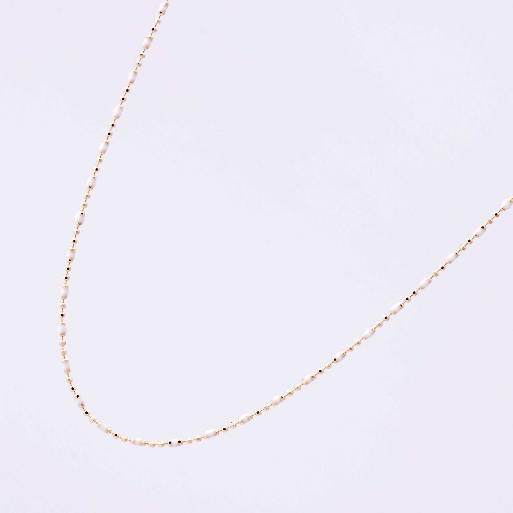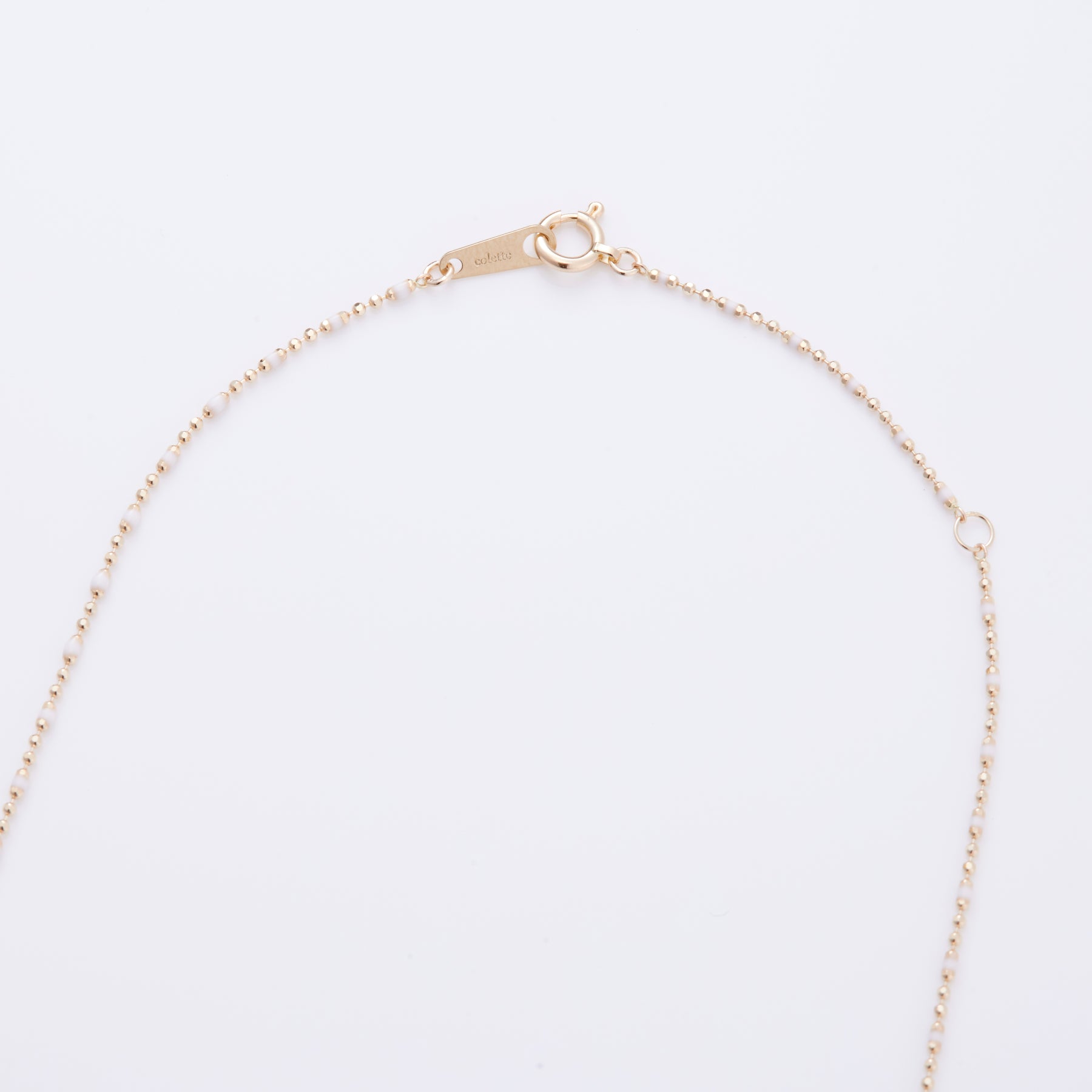ツブツブとまるでカラーストーンがついているかのようなルミネボールチェーンネックレス。繊細なデザインのコレットのボールチェーンに特殊樹脂でお色を付けています。また天然石とは違った表情が楽しめるネックレスです。ムーンストーンのような白色を使用しておりボールチェーンとの組み合わせが可愛い印象です。