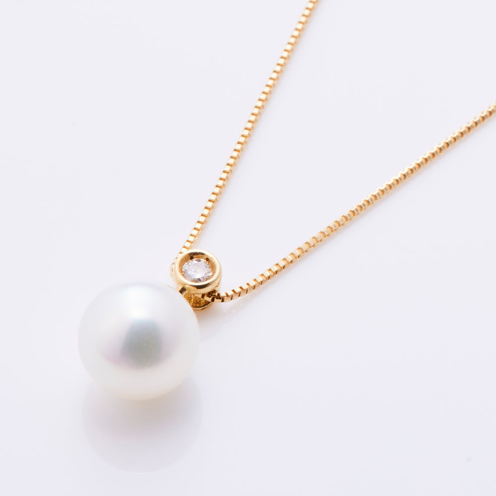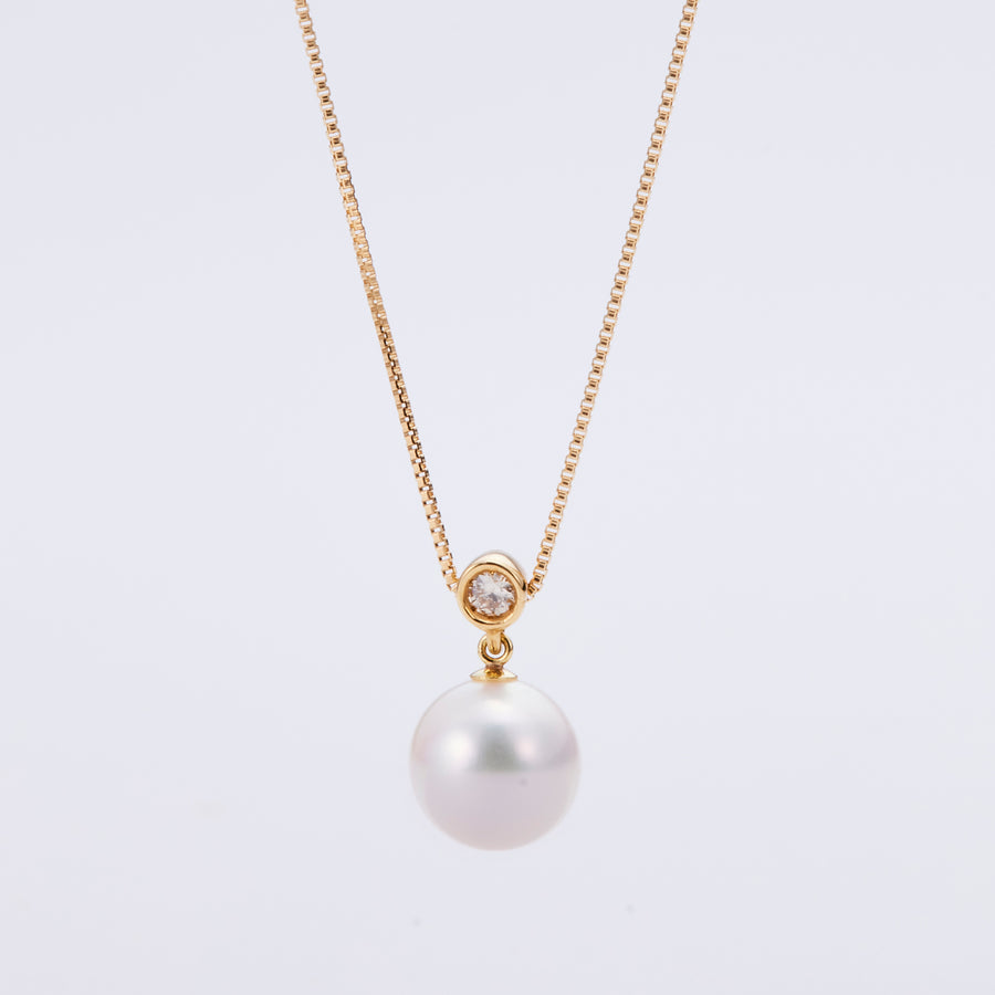 K18YG アコヤパール 1粒 ダイヤ ネックレス