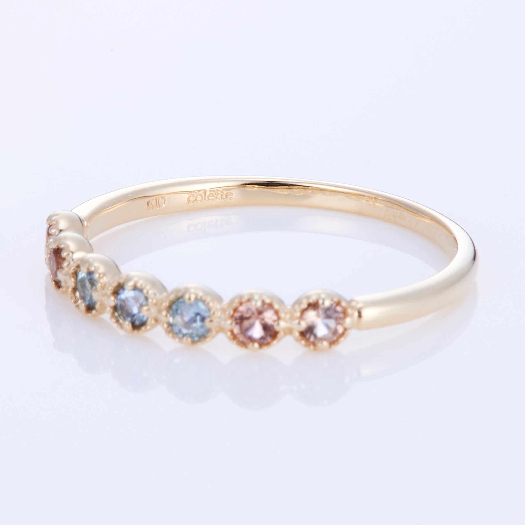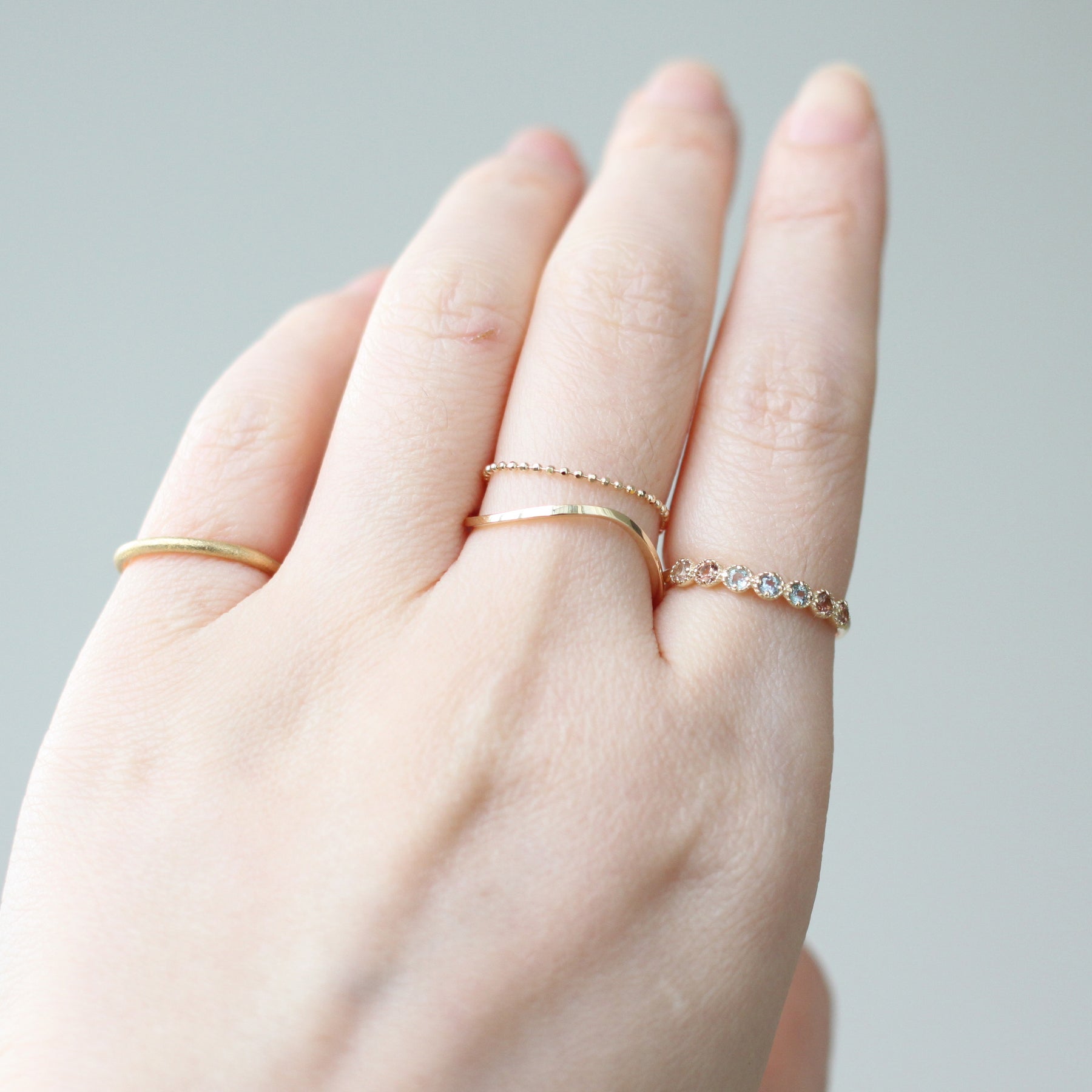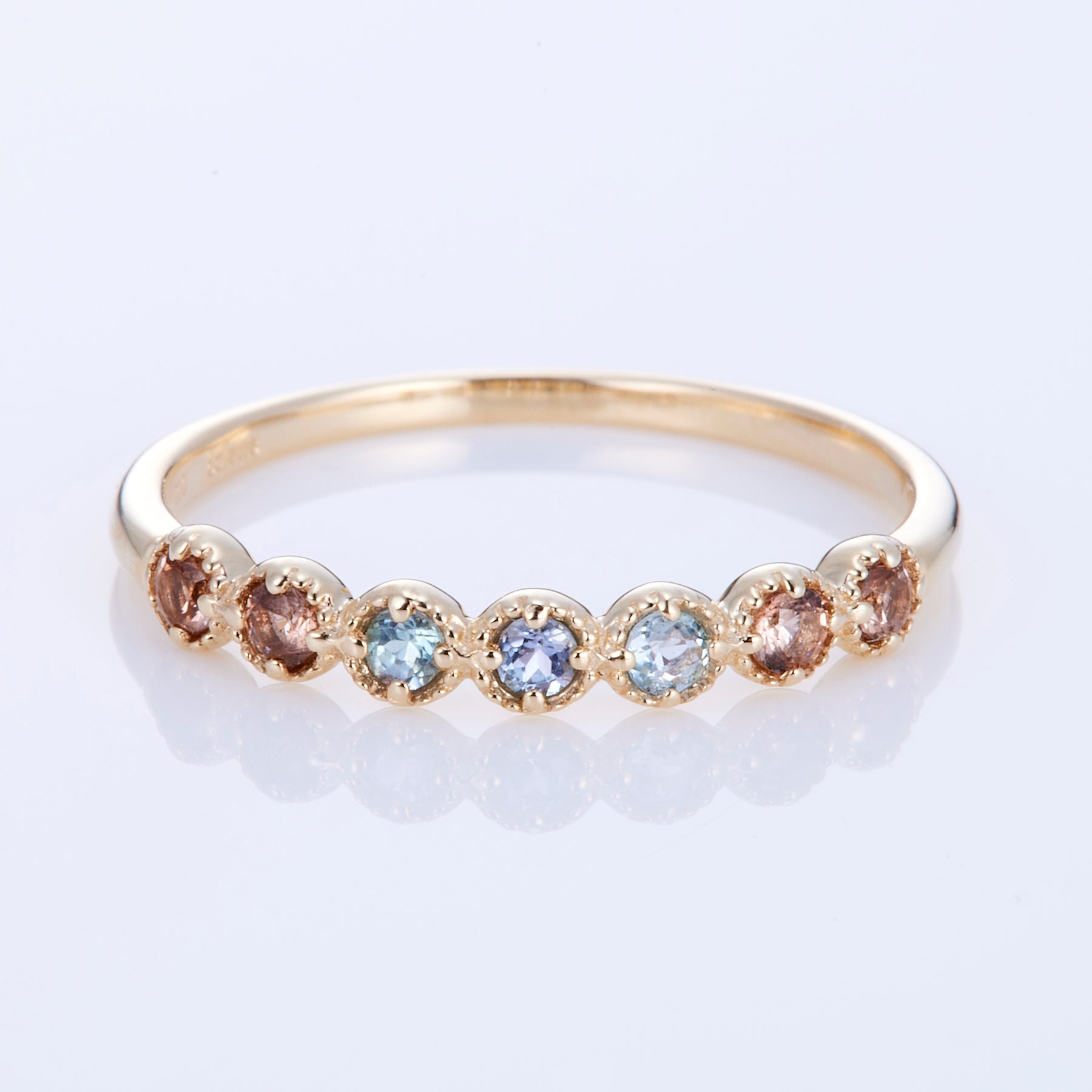 パステルカラーのピンクとブルーグリーン柔らかいトーンがお肌になじみながらも女性らしい印象です。庭園に咲き誇るパステルカラーの瑞々しい花々をイメージしたリング。リング1本ではもちろん、天然石のリングと重ね付けも素敵です。