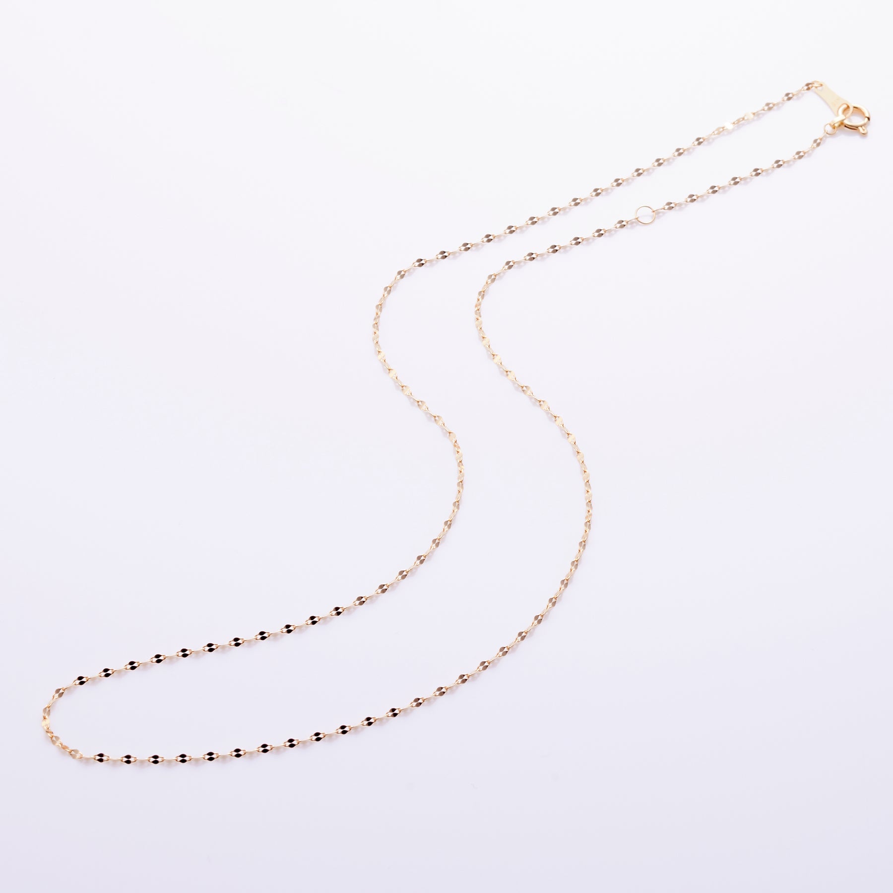 チェーンの面が動くたびにキラキラ輝く18金のエレアチェーンネックレス。チェーンネックレスの重ね付けにもおすすめです。