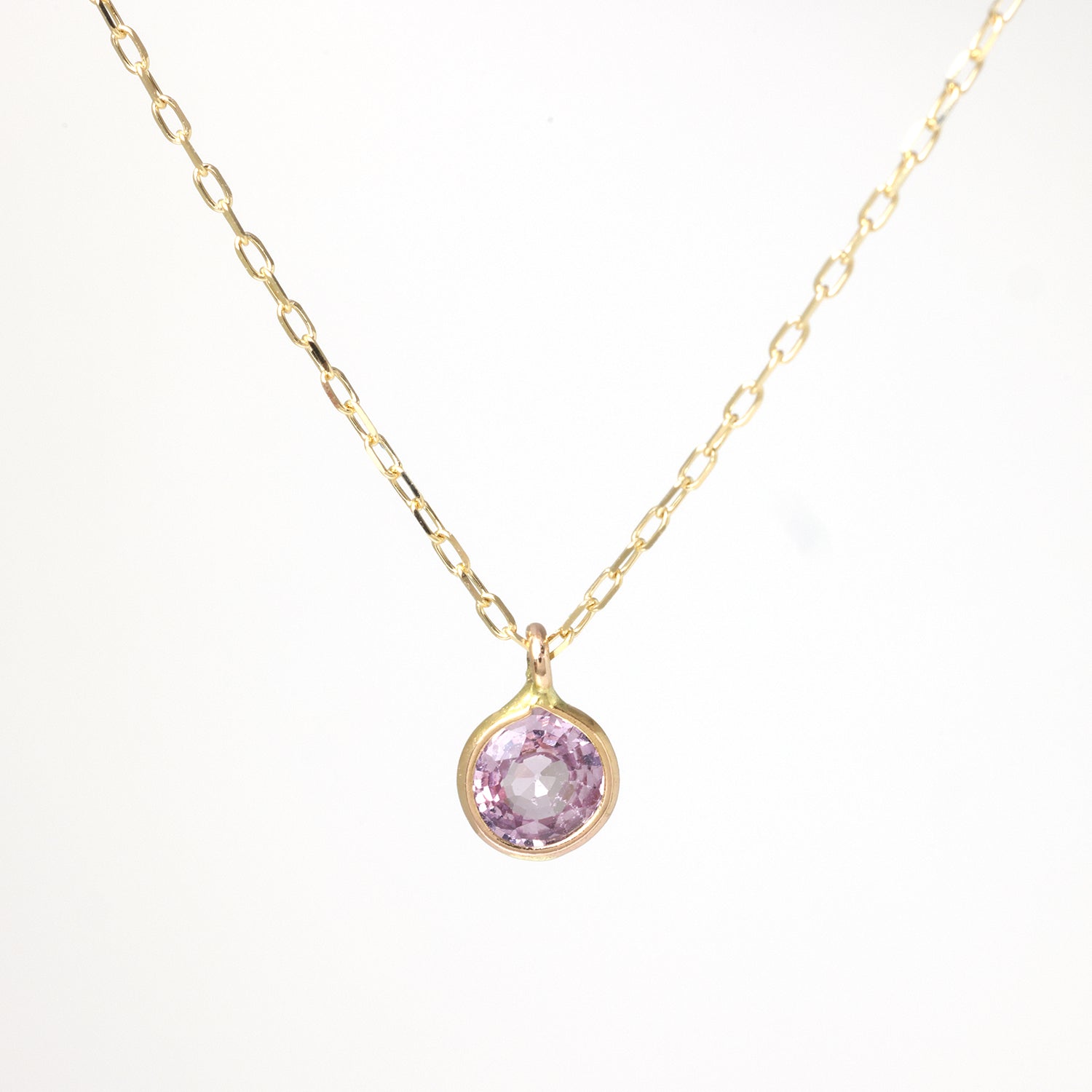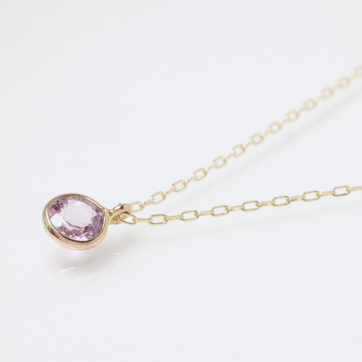 希少な非加熱サファイア。自然が育んだ透明感と奥ゆかしい煌きのある特別なサファイアを1石使用したネックレス。ピンクの優しい色合いです。