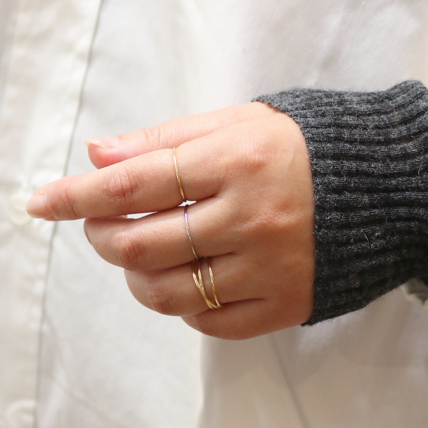 華奢なデザインのプラチナの地金のリング。お洋服やアクセサリーを選ばずにコーディネートしていただけます。また、何本か重ね付けされても素敵です。
