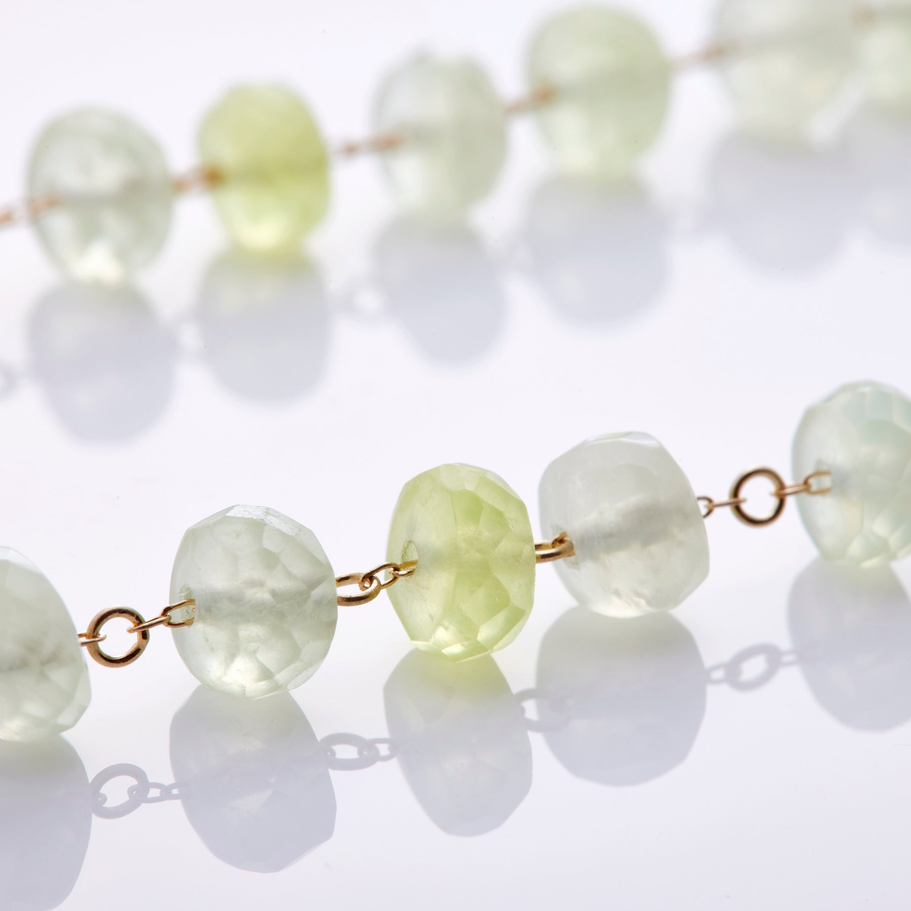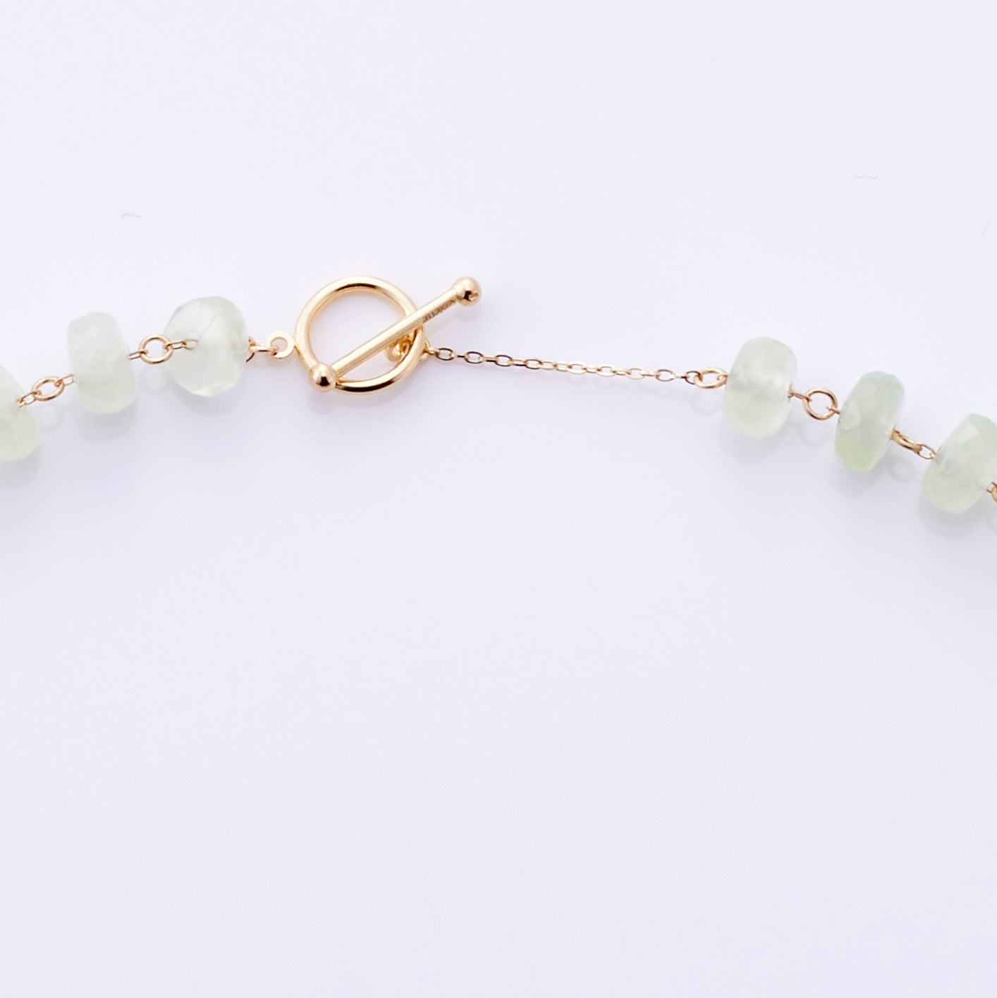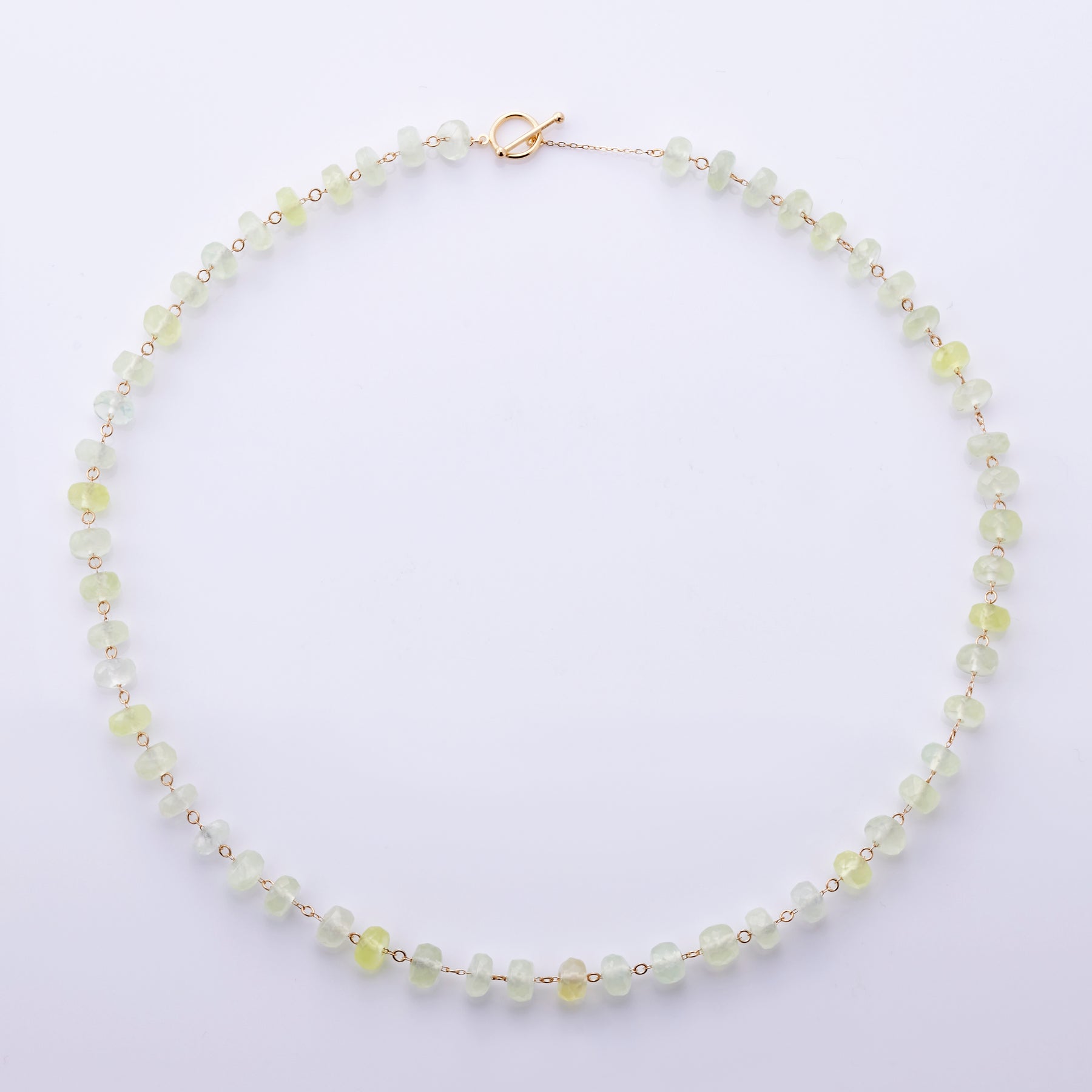 This necklace is inspired by early summer and uses the refreshing color of prehnite. Prehnite is also known as prehnite.