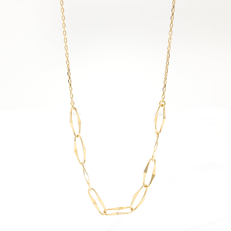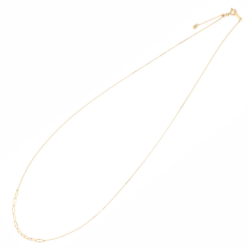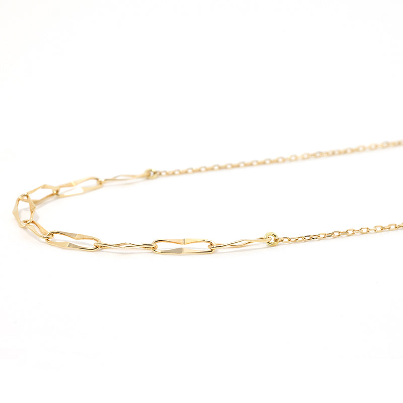 シンプルな18金のチェーンネックレス。2種類のチェーンがコンビになっており、カットが施されたチェーンの輝きが美しさを引き立たせてくれます。