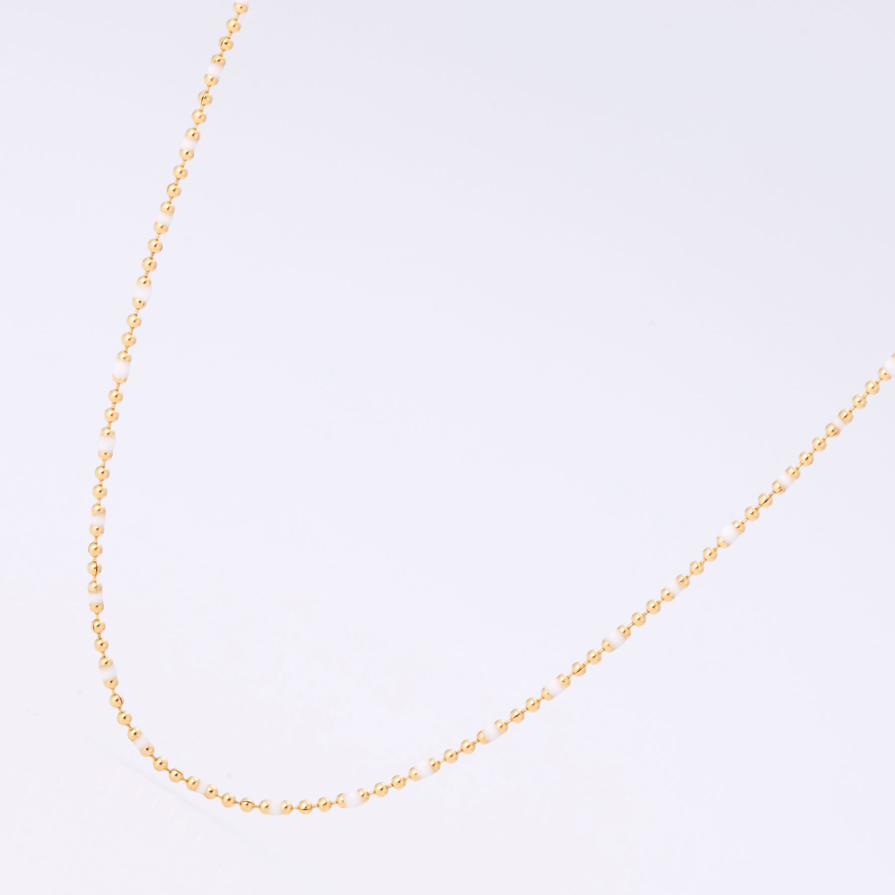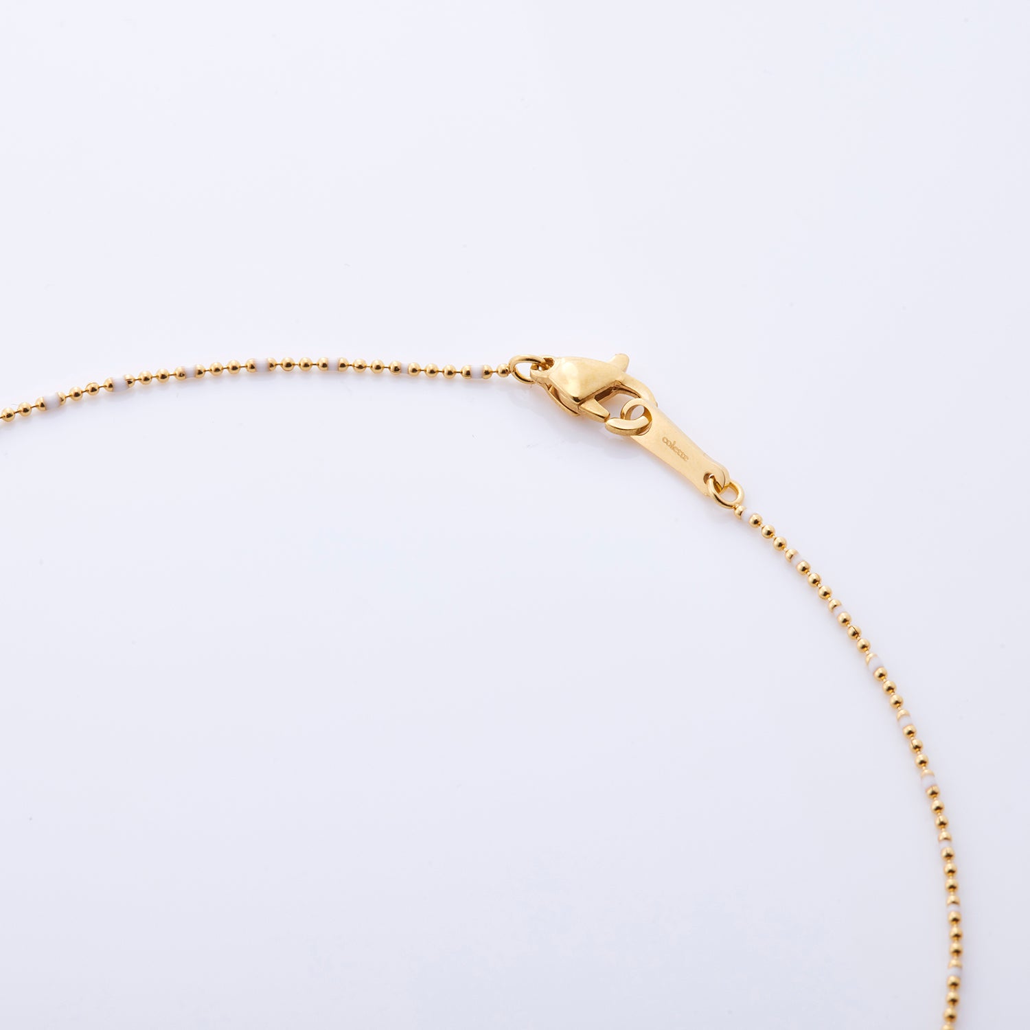 ボールチェーンに特殊樹脂で6月の誕生石「パール」をイメージして色を付けています。