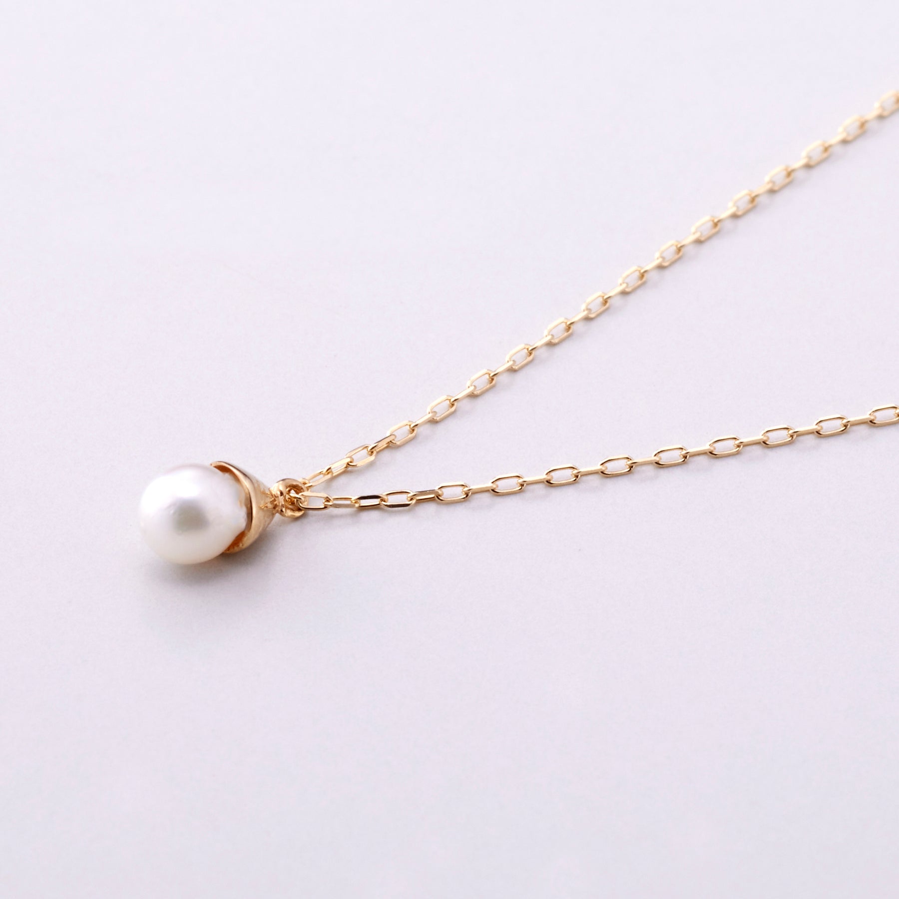 どんぐりのような笠をかぶった可愛らしい1粒のアコヤパールのネックレス。アコヤパールならではのツヤとテリをカジュアルにお楽しみいただけます。小粒なのでデイリーにお使いいただきやすく、ちょっと上品さを出したいときにお勧めです。6月の誕生石パールの石言葉は「健康・長寿・富」です。プレゼントにも喜ばれそうです。