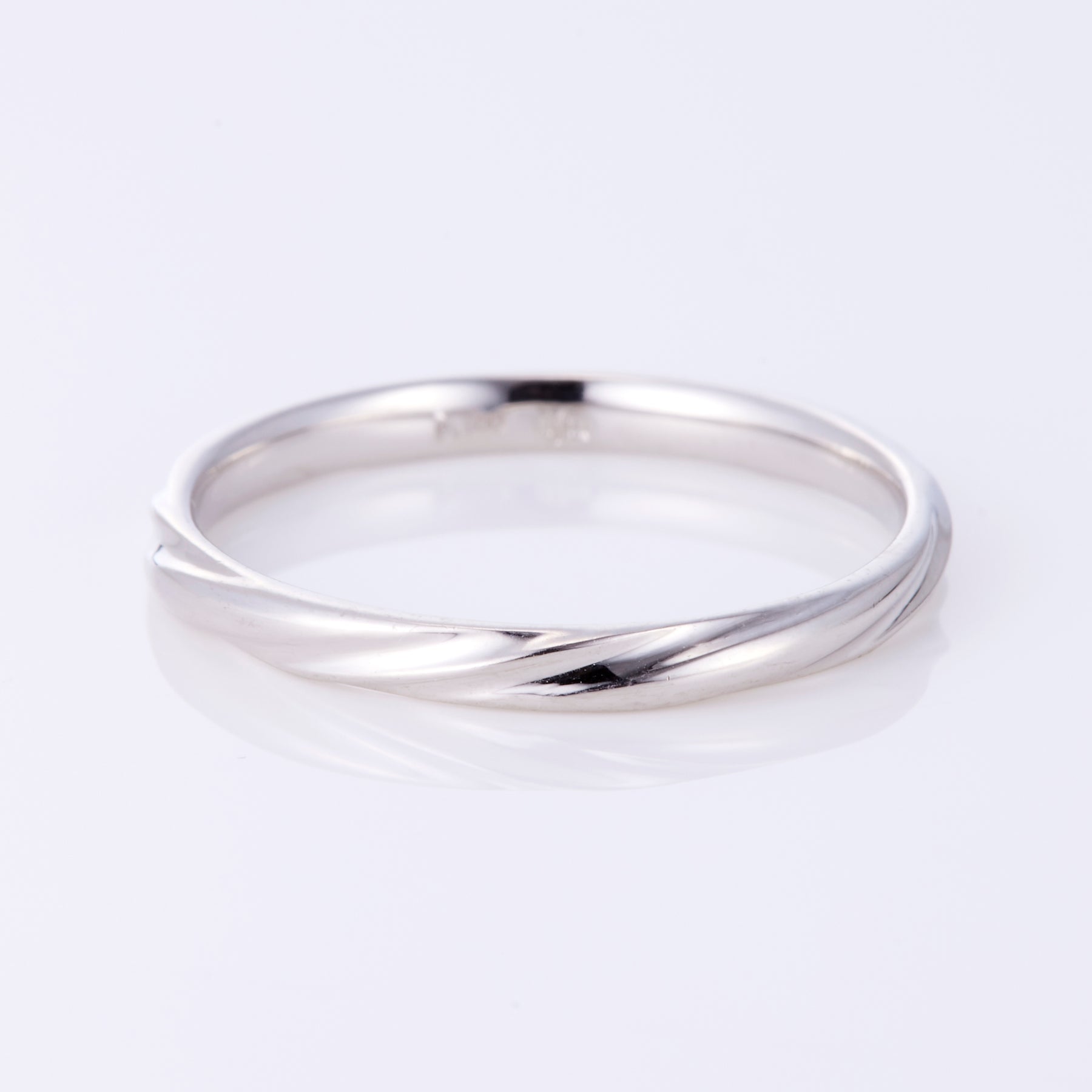 お二人の想いが重なり合い輝かしい未来が続きますように。センターに輝くダイヤモンドがこの先の道しるべとなってくれます。ストレートラインのリングですがヒネリカーブのデザインが施されているので動きがあり、指元をすっきりと魅せてくれます。丸みのあるリングが指にしっくりと馴染み着け心地の良いマリッジリングです。