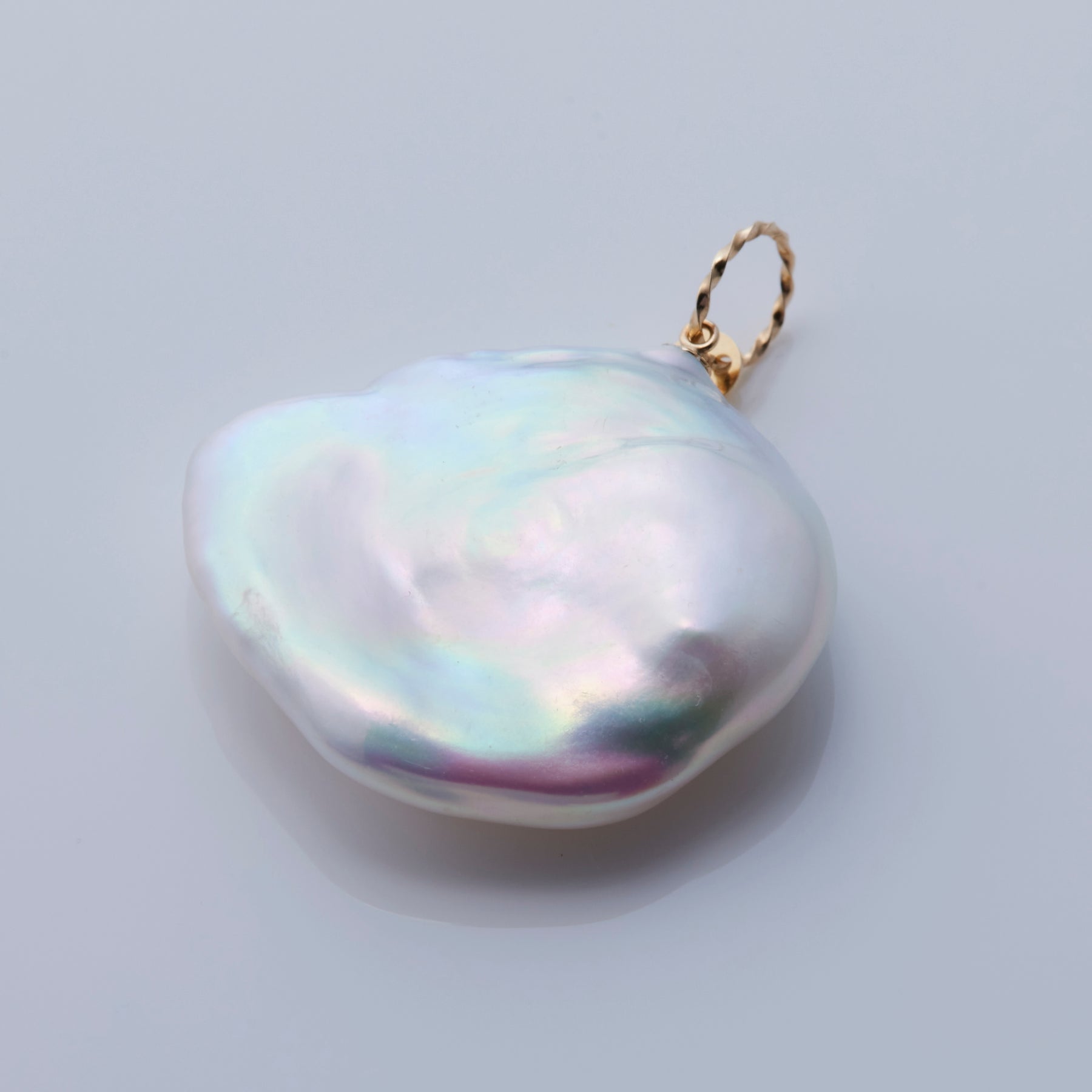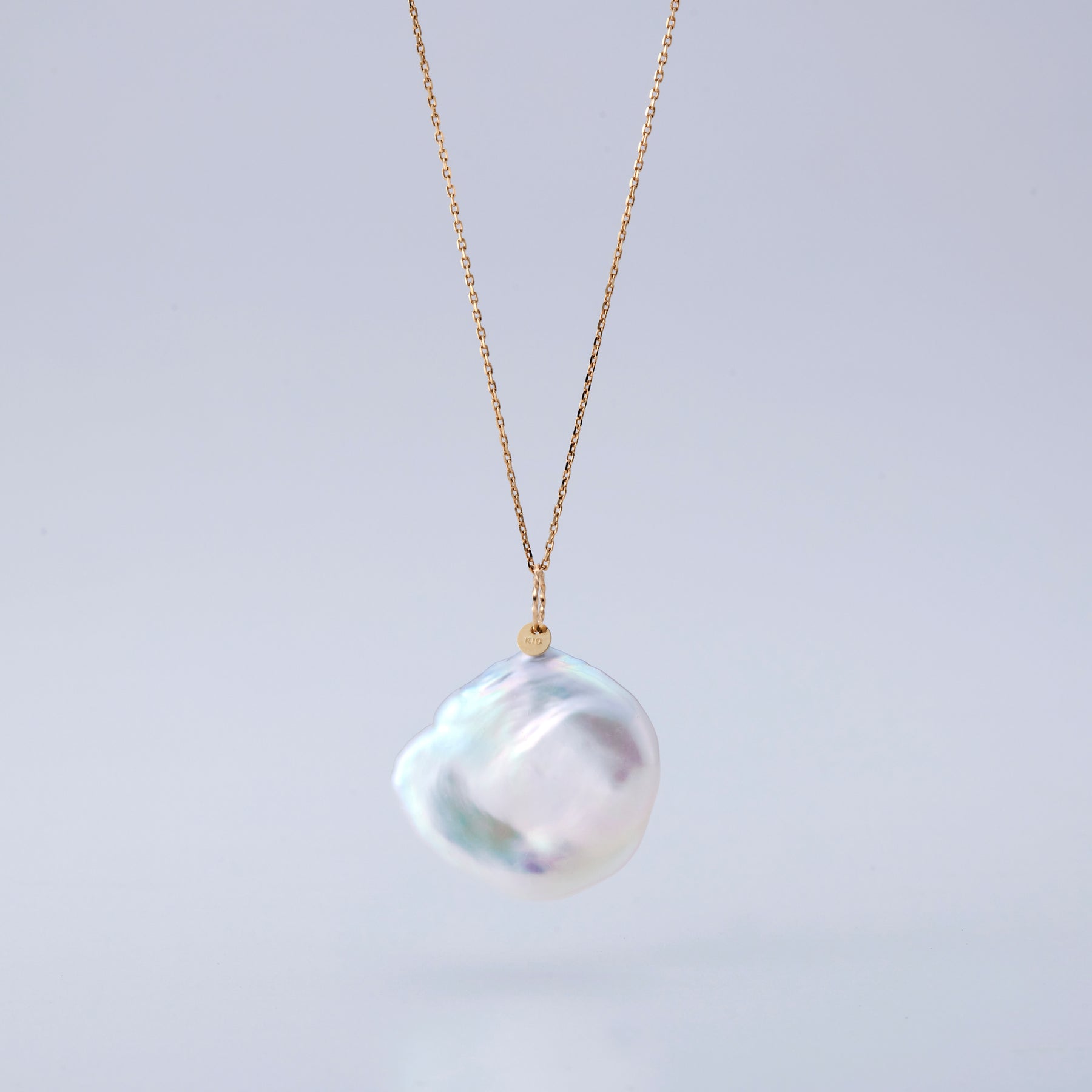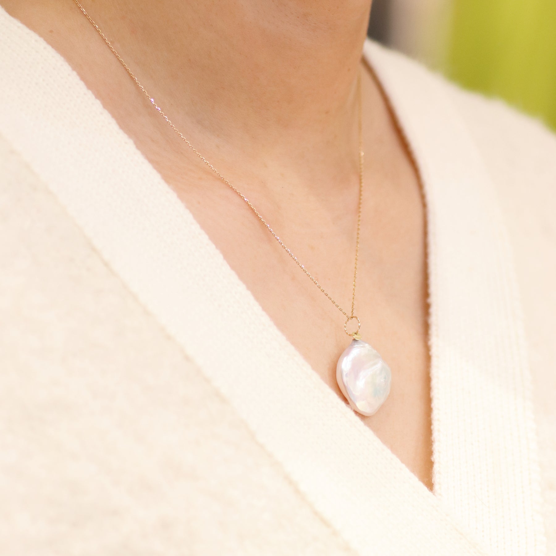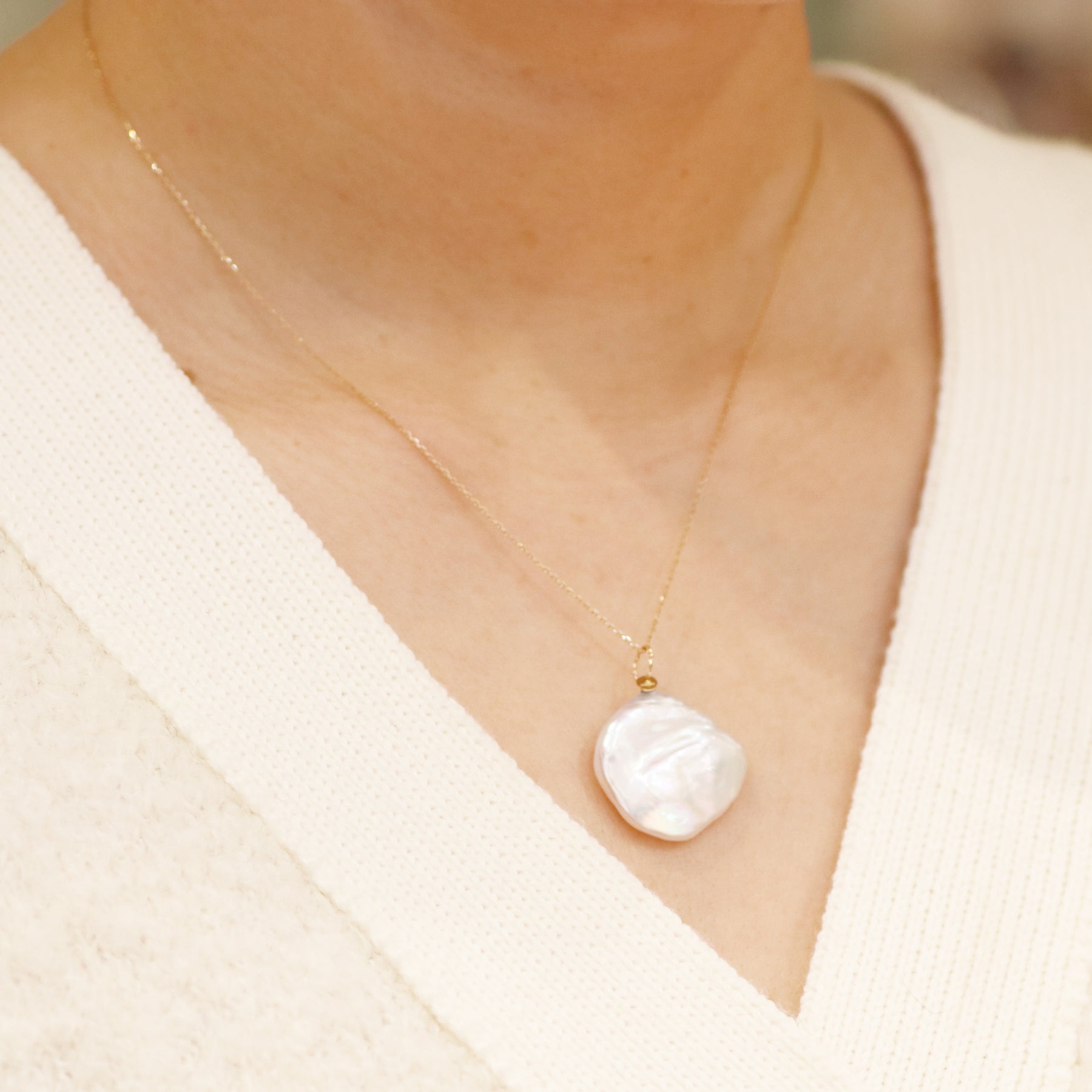 まるで雲ののような形の淡水パールのペンダントトップ。しっかりとしたサイズ感なので、ショートタイプのネックレスにはもちろん、ロングネックレスに合わせてもコーディネートしていただけます。