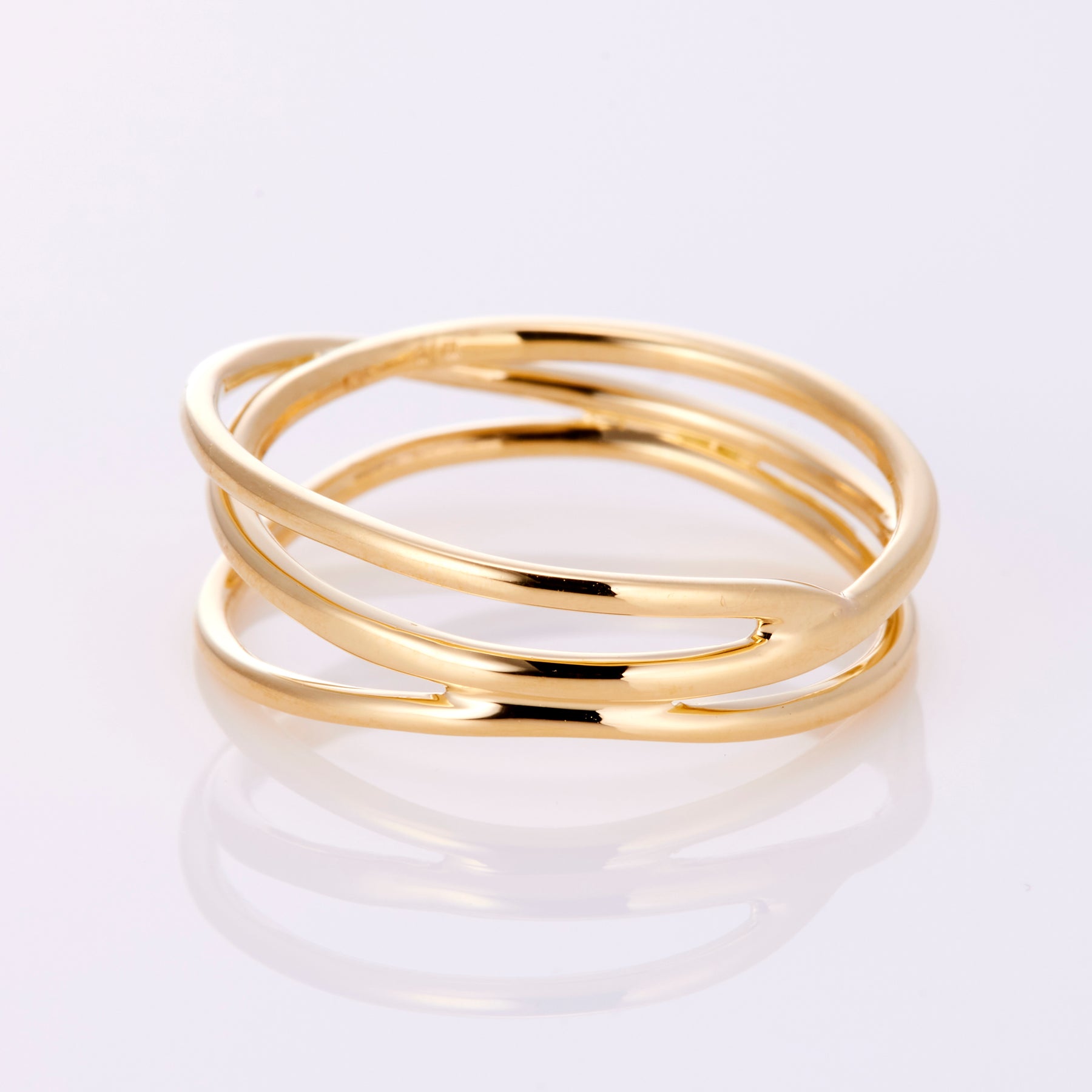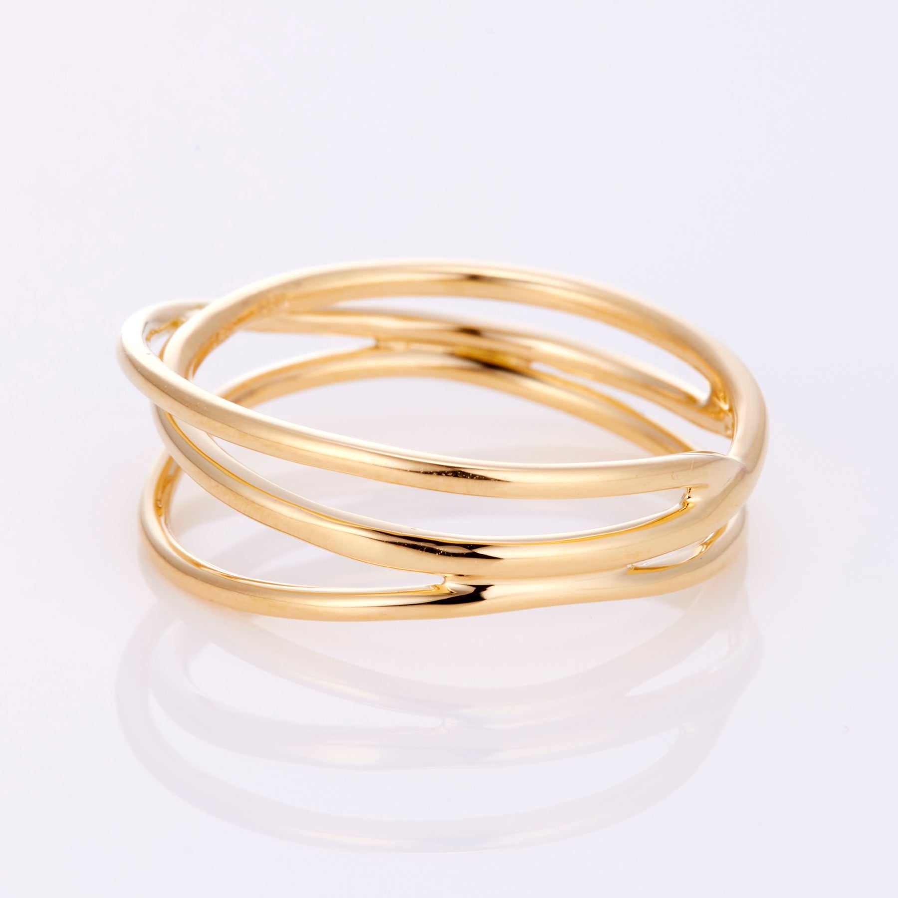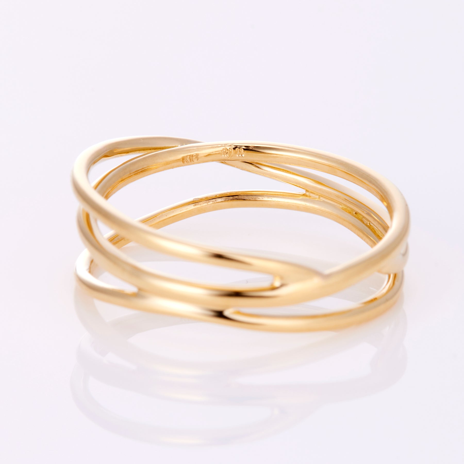 金の糸が絡み合ったようなデザインの18金のルリアンリング。地金のみのリングなので、お洋服やアクセサリーを選ばずに、1本でもきまる存在感あるデザインです。サイズは13号になります。