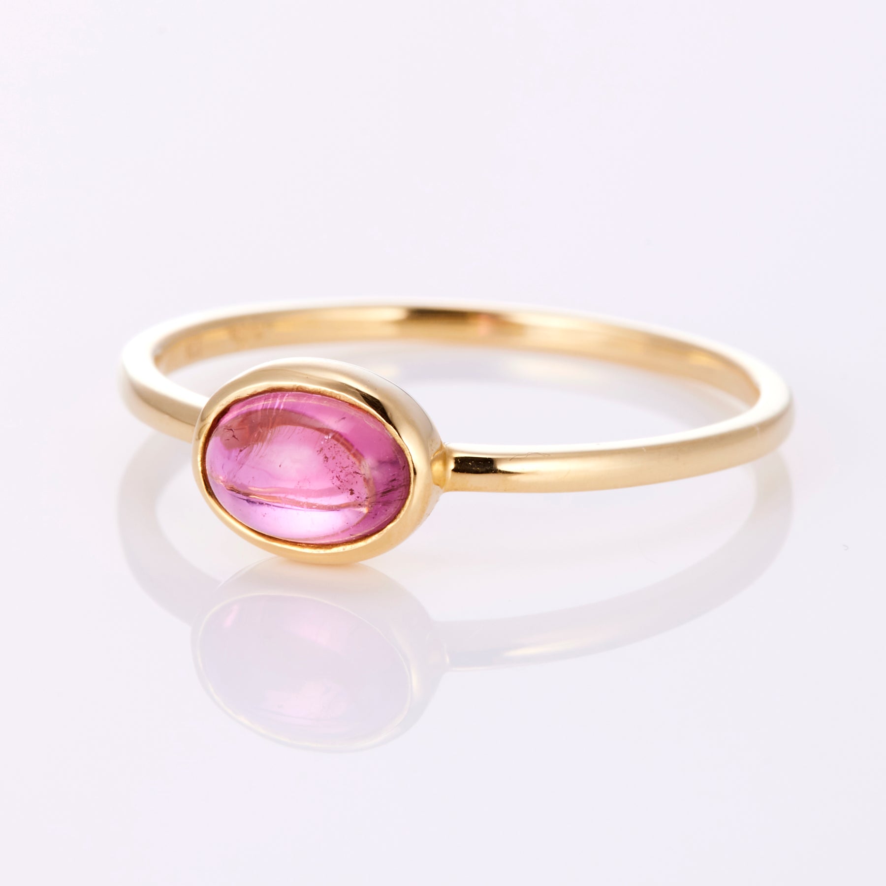 愛と癒しを象徴するピンクトルマリンをセッティングした18金のリングは、透明感のある可憐なピンクが指元を明るく彩りを与えてくれます。シンプルながらも高級感を感じさせるデザインです。デイリーにも特別な日にも映える、永くお使いいただけるリングです。